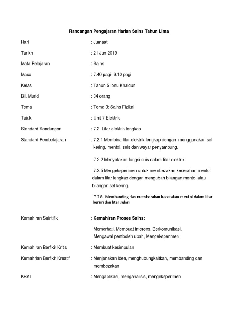 Log Out Tukar Anda sedang menulis komen melalui akaun Google anda. Rph Sains Tahun 5 Elektrik 7 2 2 7 2 3. Memberikan dan memahami arahan i.